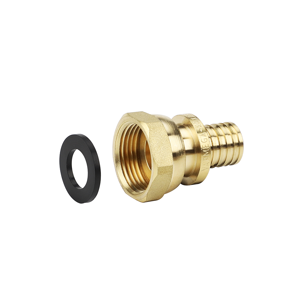 Муфта латунная с накидной гайкой Varmega Slide-fit с одной стороны имеет надвижное соединение для трубы, а с другой стороны фитинга находится внутреннее резьбовое соединение с накидной гайкой.