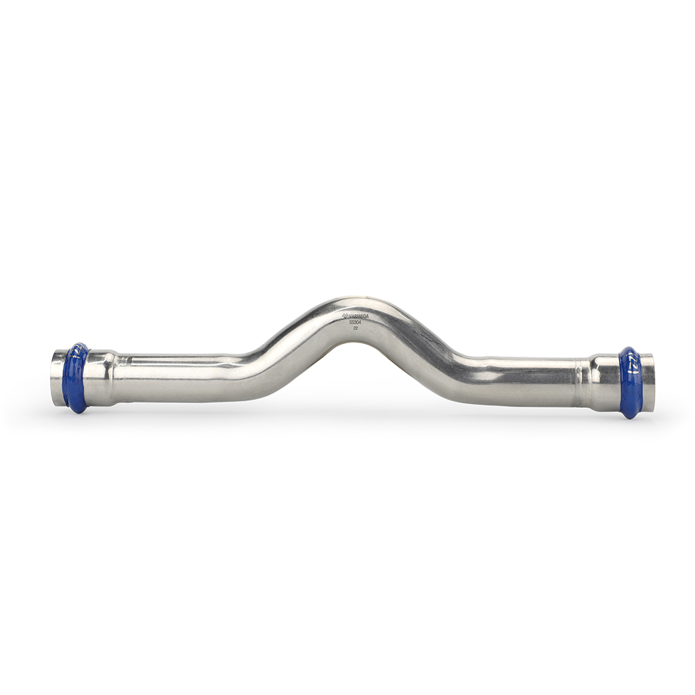 Обвод двухраструбный Varmega Inox Press равносторонний, используется для обхода препятствий или изменения направления линии трубопровода при прокладке инженерных коммуникаций.